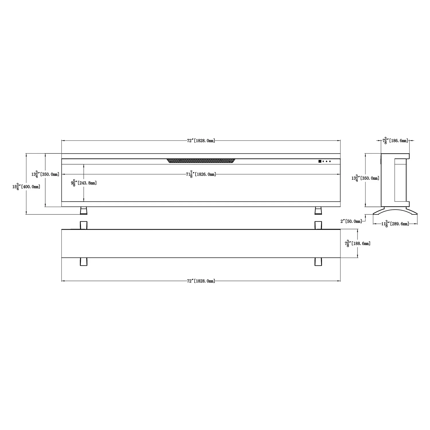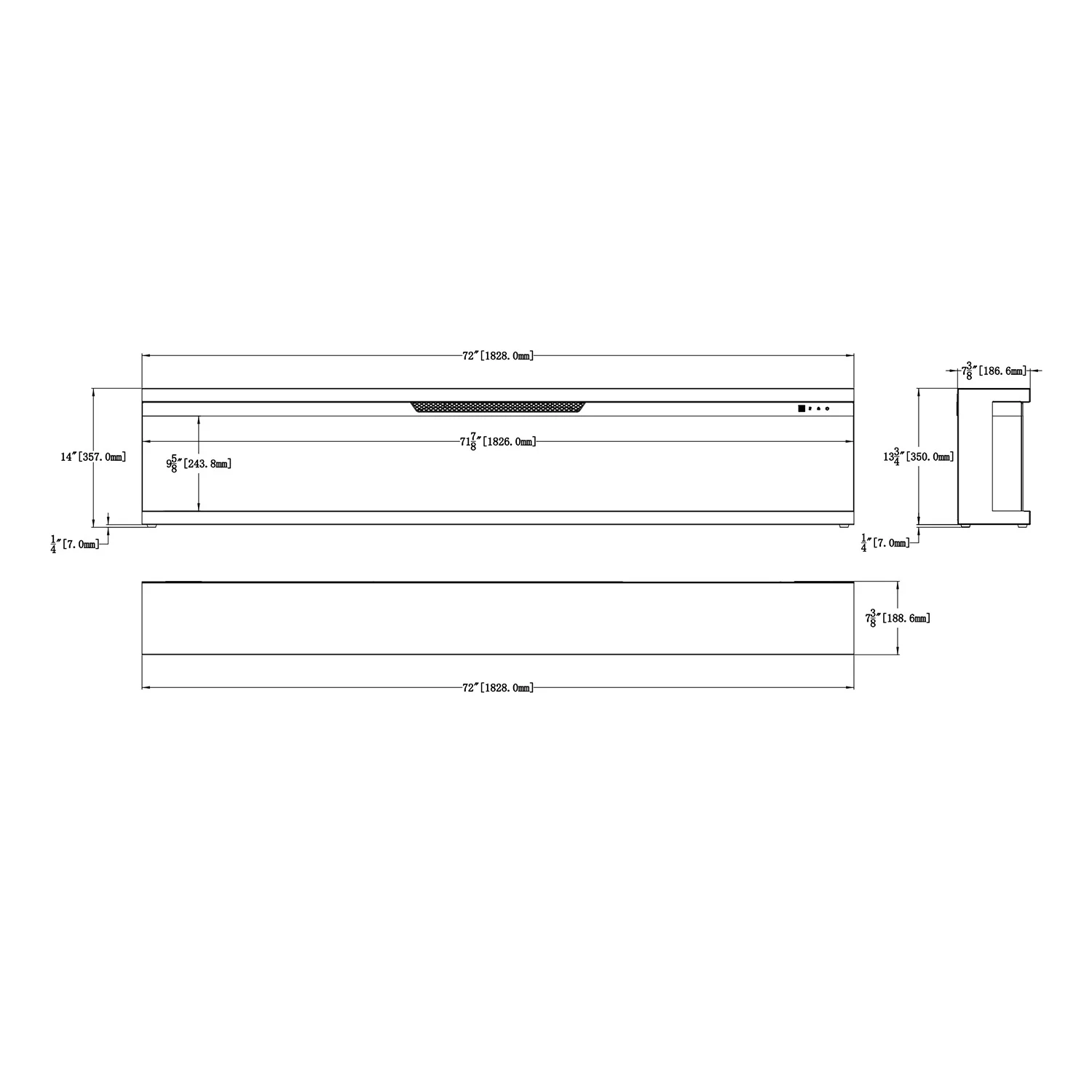 3-sidig innebygget elektrisk peis