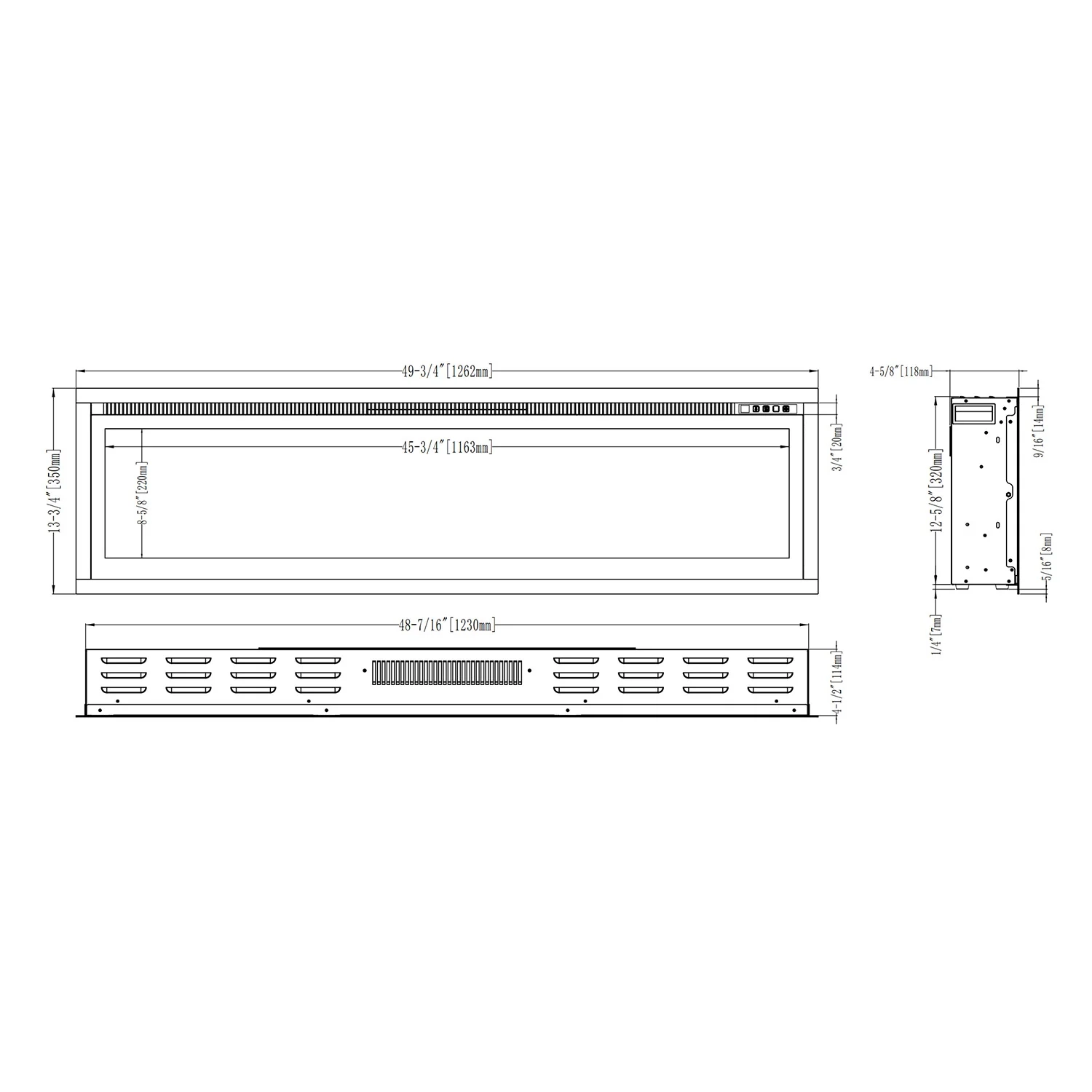 1-sidig innebygget elektrisk peis