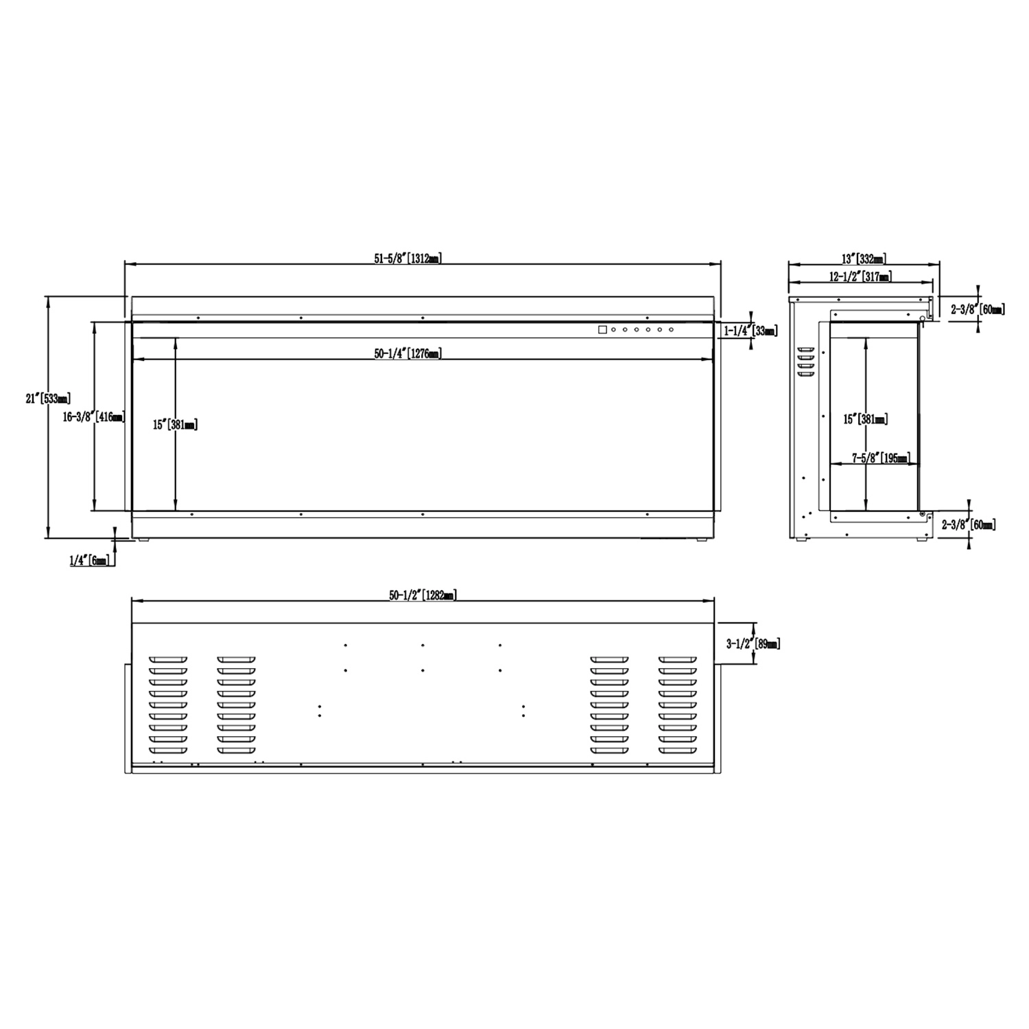 - Dimensjoner: 132 × 54 × 34 cm (52\" × 21.3\" × 13.4\")