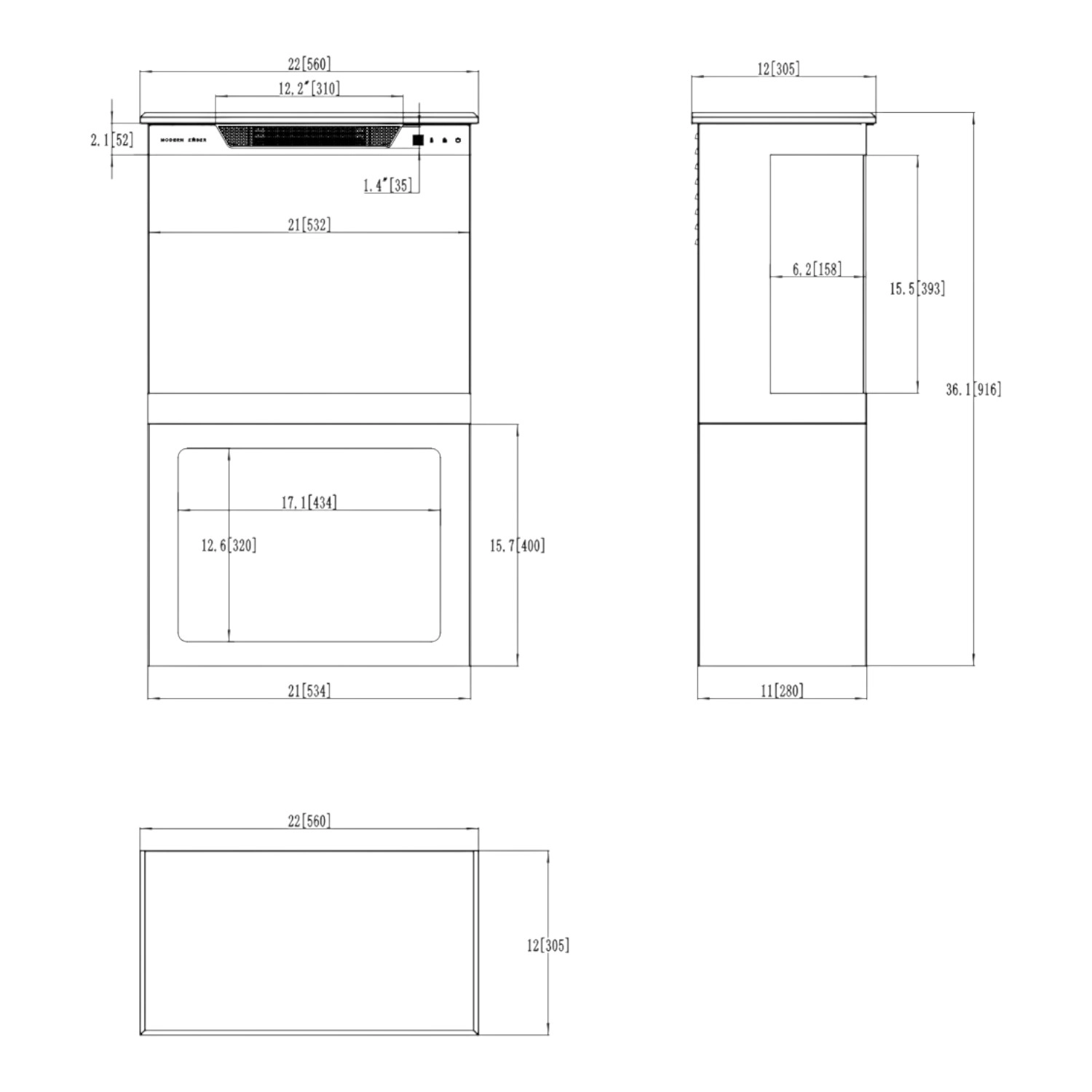 - Dimensjoner: 56 × 91,6 × 30,5 cm (22\" × 36\" × 12\")