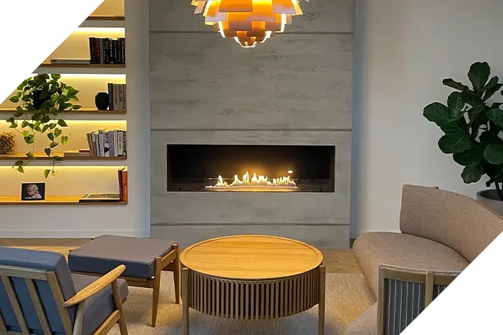 Foco One gir mulighet til å se peisens flammer fra én side og kan brukes i mange forskjellige innbygningsløsninger.
