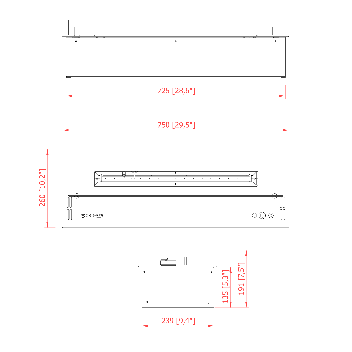 Neo 750 er en 75 cm bred automatisk fjernstyrt bioetanolbrenner - perfekt som et alternativ til en tradisjonell vedovn.