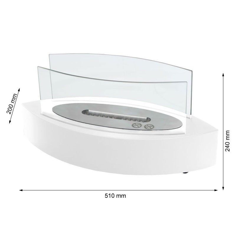Denne ovale bordbiopeisen i hvit er en stilfull og allsidig tilføying til ethvert hjem. Med en 360° synlig flamme skaper den en koselig atmosfære fra alle vinkler. Den har en 1,2 liters tank som gir 3-4 timers brenntid, perfekt for å skape hygge både innendørs og utendørs. Med en vekt på kun 5 kg er den lett å flytte, noe som gjør den ideell for plassering på alt fra hyller til spisebord. Peisen leveres med slukkingsverktøy og manual for sikker og enkel bruk.